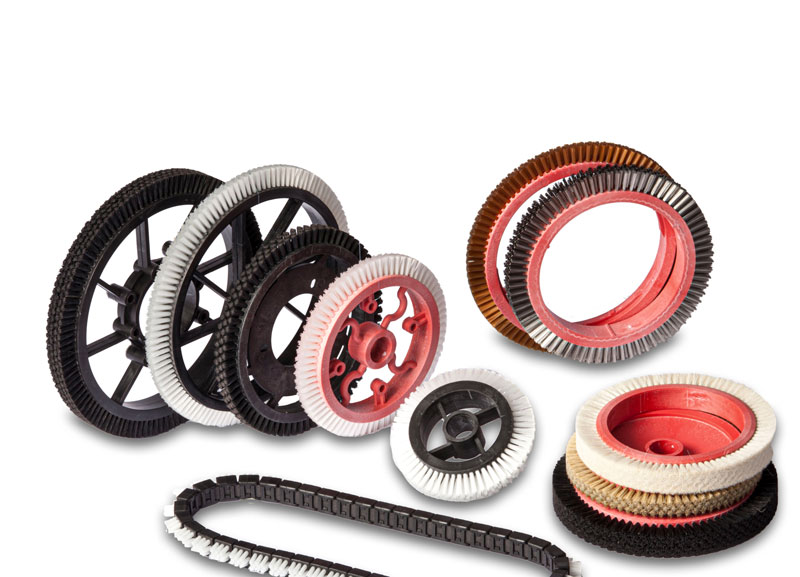 Overfeed brushes (Pinning-on brushes), postpinning brushes and link belt brushes